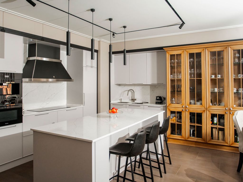 В этом пространстве удобно готовить и приятно принимать гостей.