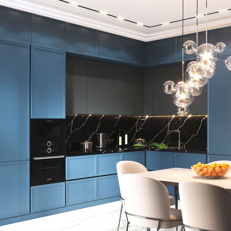 Строгость и элегантность кухни Ронда способна задать тон интерьеру всего дома. На выбор клиентам предлагается 2000 вариантов окраски по цветовой таблице NCS! В качестве крепежной фурнитуры используется продукция от Blum, а в основе корпуса лежит МДФ эмаль или ДСП EGGER.